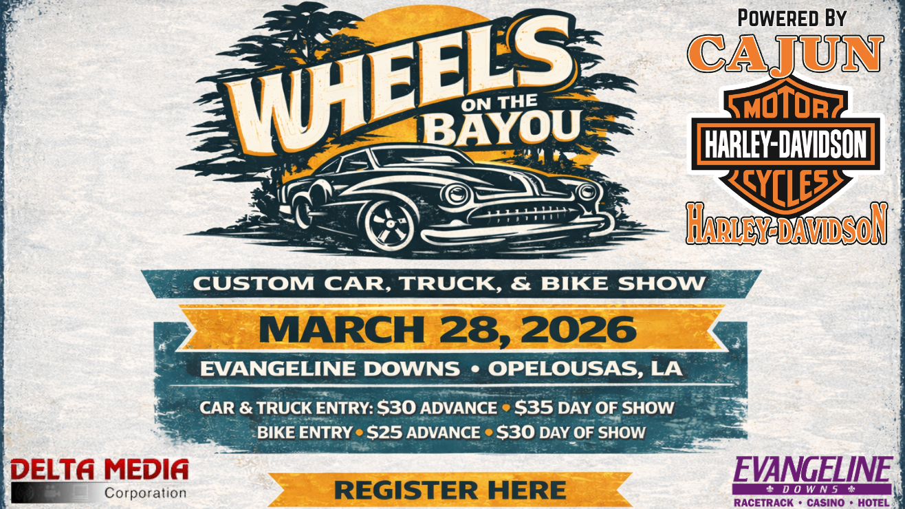 Mark your calendars for Wheels on the Bayou 2026, powered by Cajun Harley-Davidson, happening March 28th at Evangeline Downs Racetrack & Casino in Opelousas!